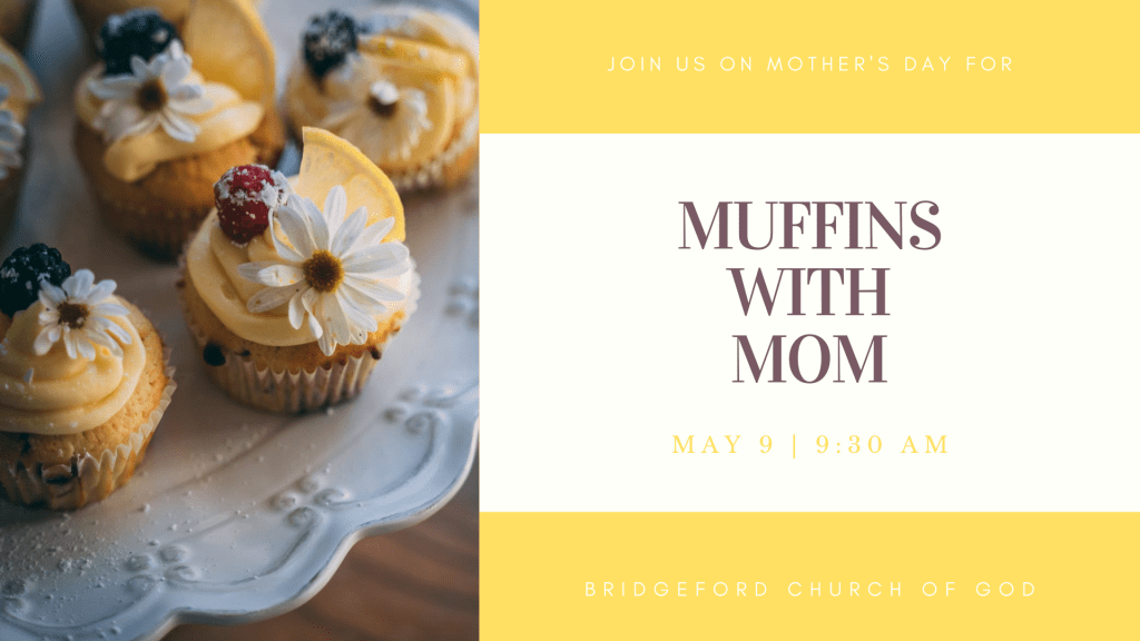 Join us on Mother’s Day for Muffins with Mom! It all begins at 9:30 AM. There will be no Sunday School.